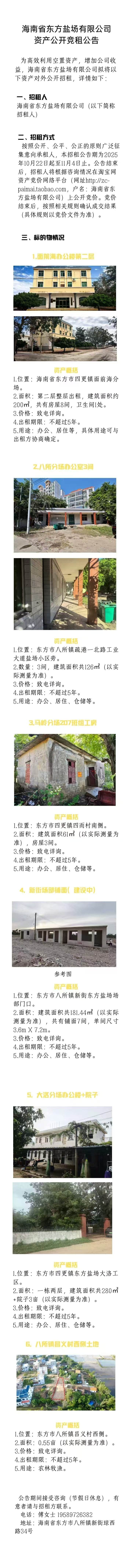 海南省东方盐场有限公司关于东方市八所镇疏港二北路东侧土地使用权公开招租的公告