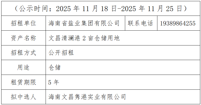 海南省东方盐场有限公司资产公开竞拍结果公示